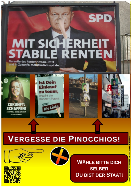 Egal, ob Cum-ex-Scholz oder bald BlackRock-Merz vielleicht koalierend mit Space-X-Weidel kannst du nach dieser Bundestagswahl 2025 über ein Ding ganz sicher sein: keiner bzw. keine unter den aus der Ferne von den unsichtbaren Händen manipulierten Politfiguren wird deine Sichtweise als Volksdemokrat im Ernst verteidigen.