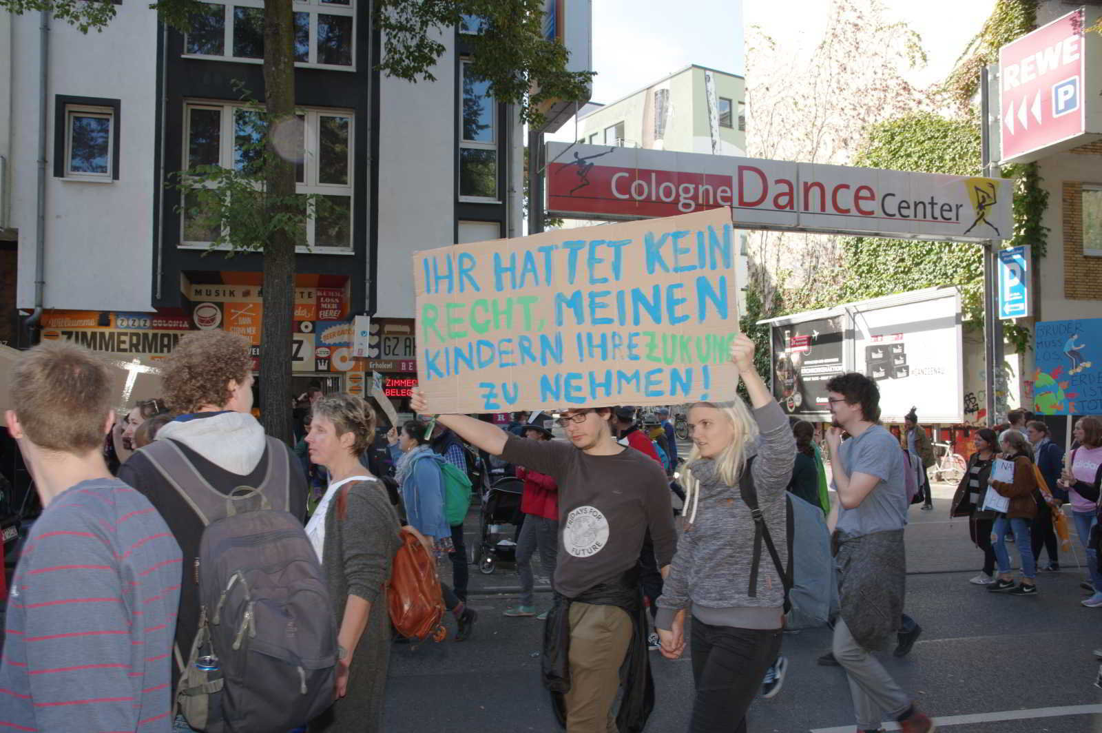 Schätzungsweise haben in Köln mehr als 70.000 Menschen an diese Demo teilgenommen. Ich selber stand auf der Venloer Straße auf der Höhe des Stadtgartens und hatte wirklich den Eindruck, dass diese Demo keinem Ende kennen würde. Zwei Stunden lang habe ich beobachtet, wie schön junge und ältere Menschen friedlich für eine bessere Umwelt auf die Straße gekommen sind.