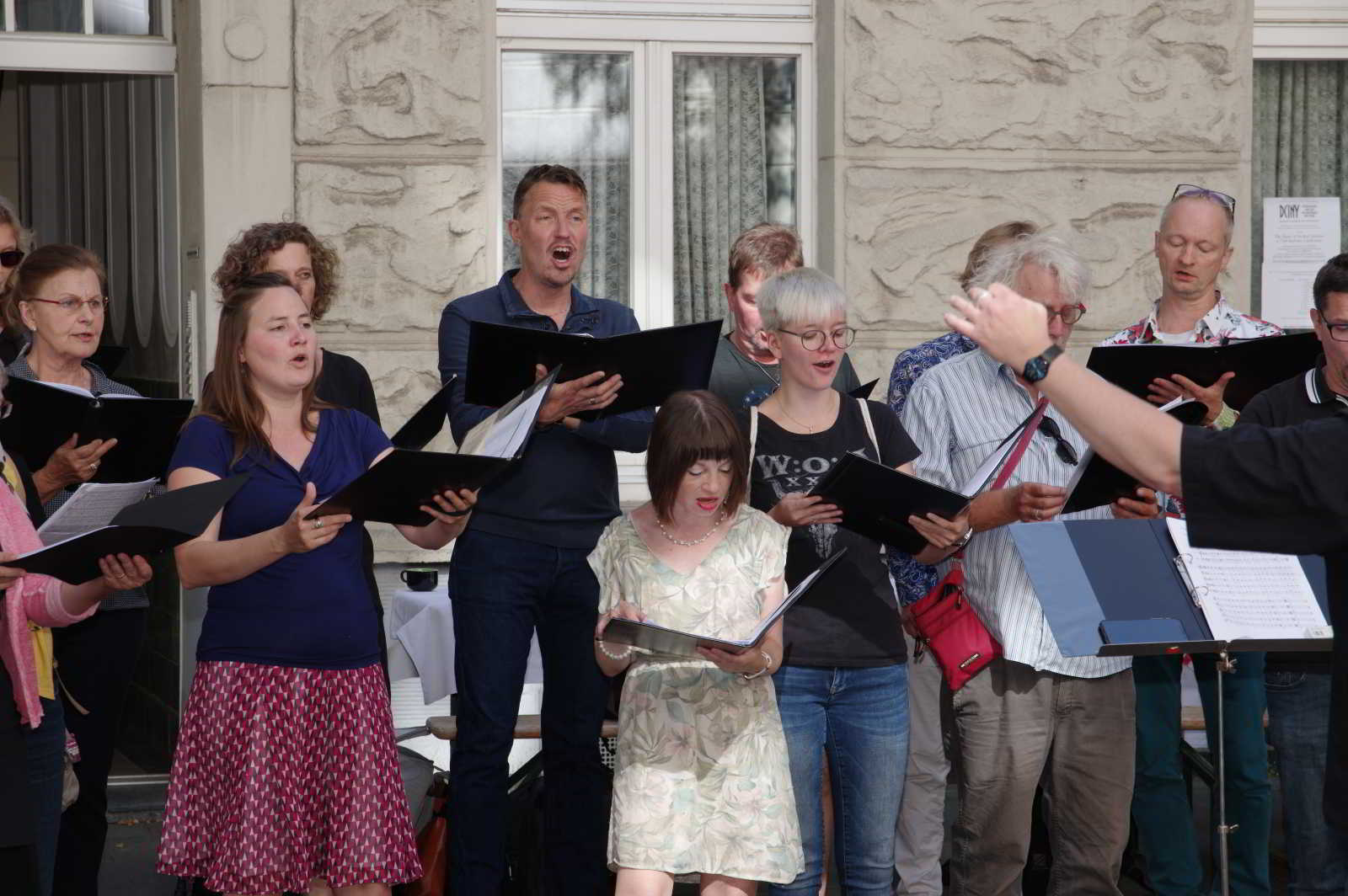 Für Unterhaltung hat Raoul Reimersdal reichlich gesorgt. Opernlieder aus der Hochzeit des Figaros, der Zauberflöte oder auch noch aus Carmen wurden von ihm interpretiert. Direkt gegenüber uns ist die Ehrenfeld Kantorei mit 30 Sängern/innen aufgetreten.